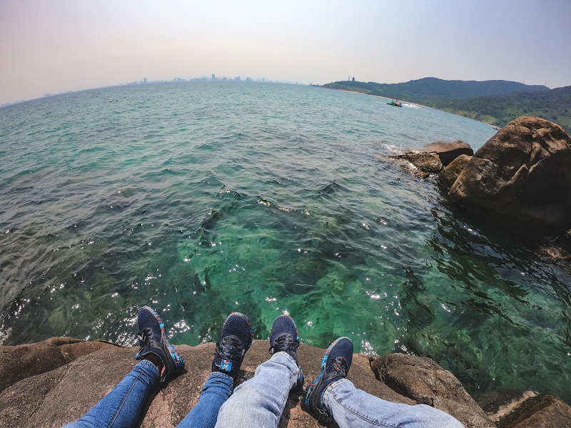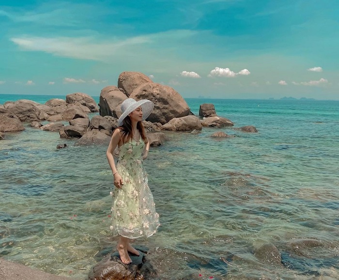 Sau khi ăn xong, du khách có thể leo xuống những chỏm đá ngay bên chòi của mình để tạo nên những shoot hình ăn ý. Đặc biệt, các bạn có thể cùng nhau ngâm mình dưới dòng biển mặn, cùng nhau tạo nên những khoảnh khắc thật đáng nhớ.