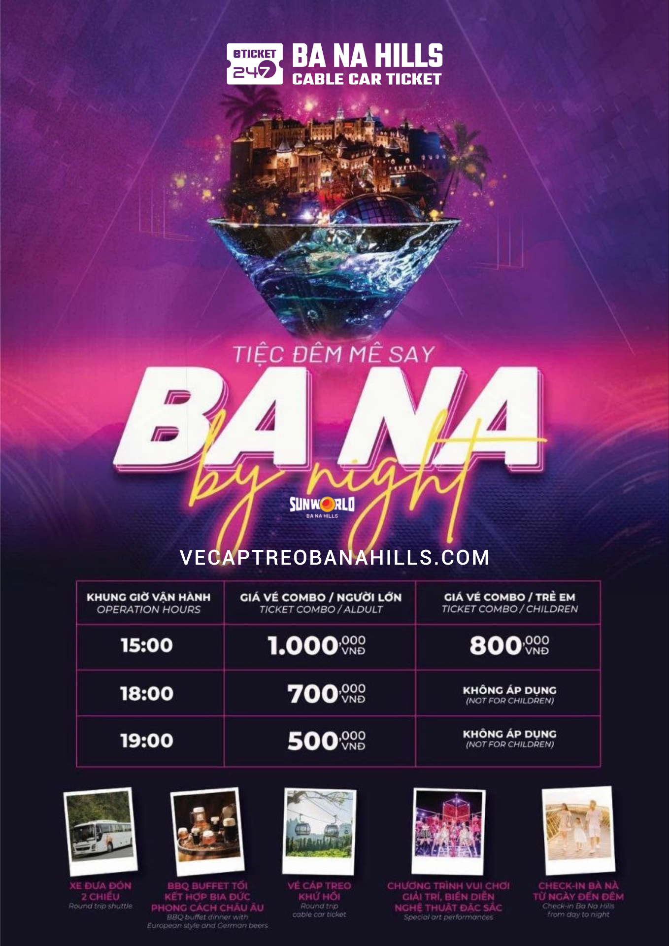 VÉ COMBO BA NA BY NIGHT (COMBO ĐÊM BÀ NÀ HILLS): Áp dụng cho tất cả du khách không phân biệt tỉnh thành.